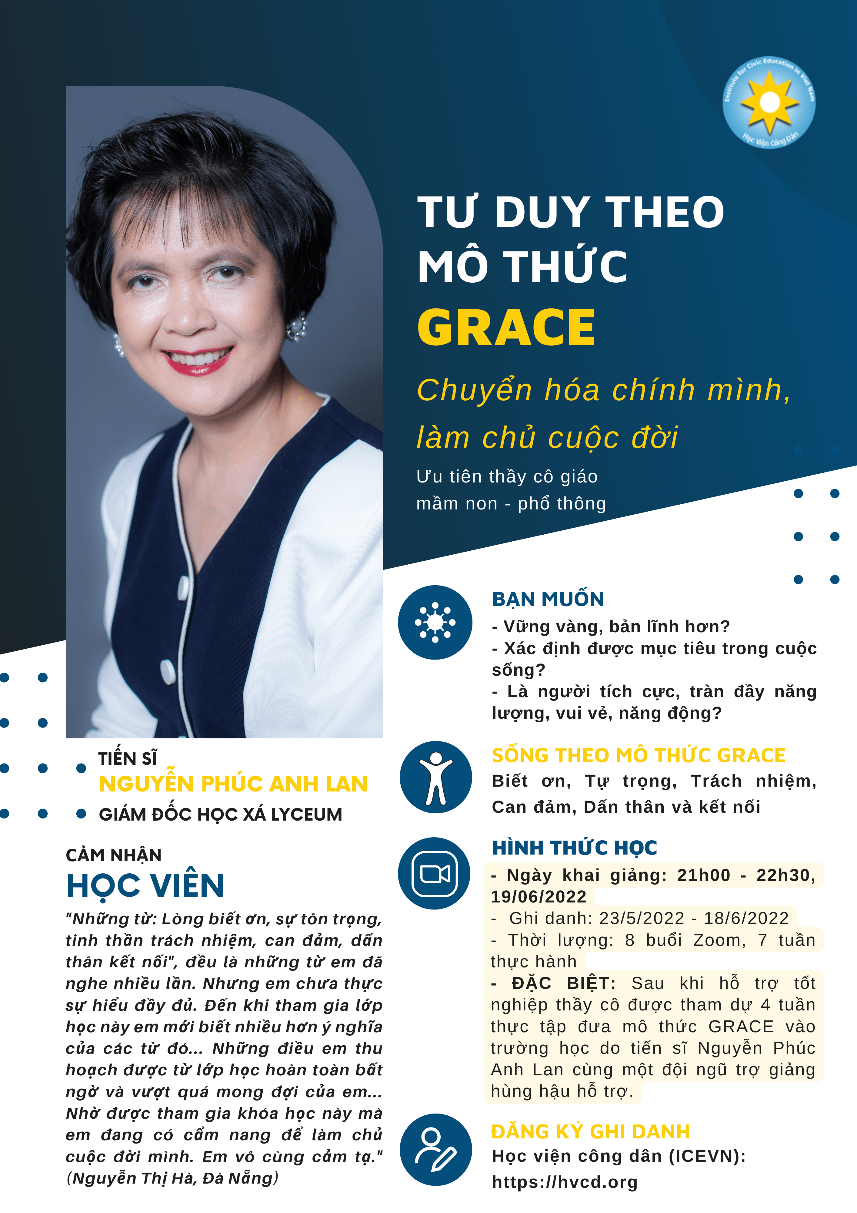 Tư Duy Theo Mô Thức GRACE: Chuyển Hóa Chính Mình, Làm Chủ Cuộc Đời (Ưu tiên cho thầy cô giáo mầm non-phổ thông)